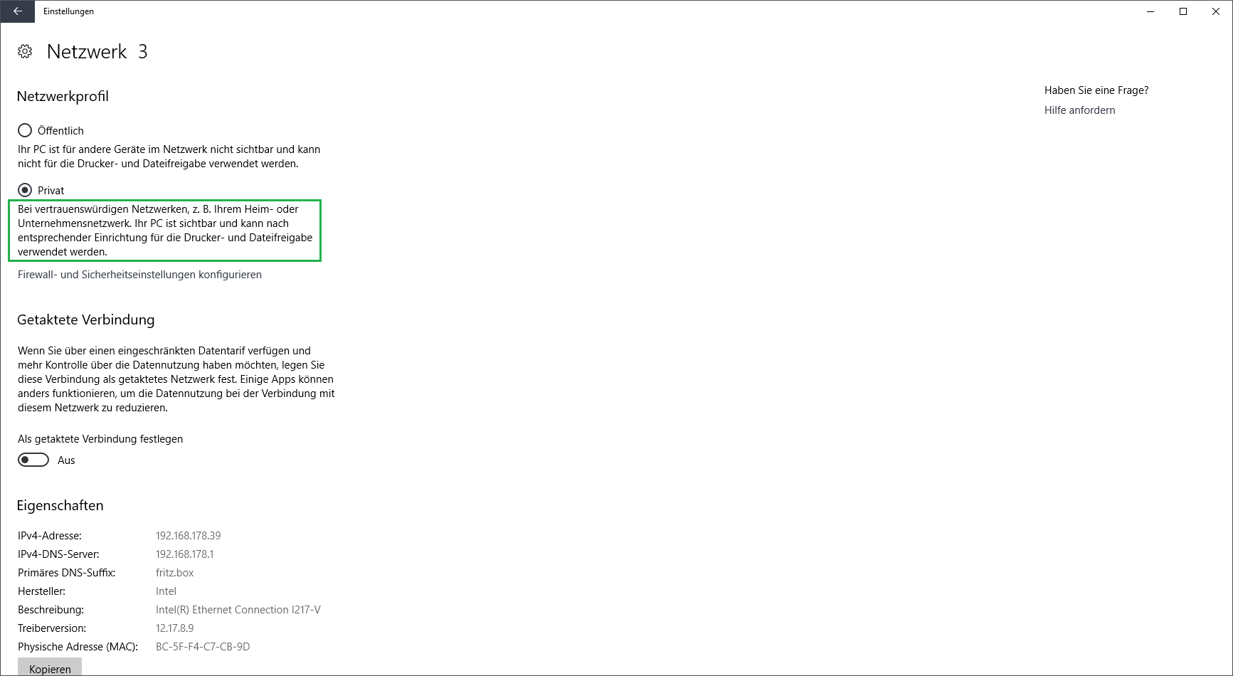 Win10Home, Heimnetzwerk auf Privat stellen?!