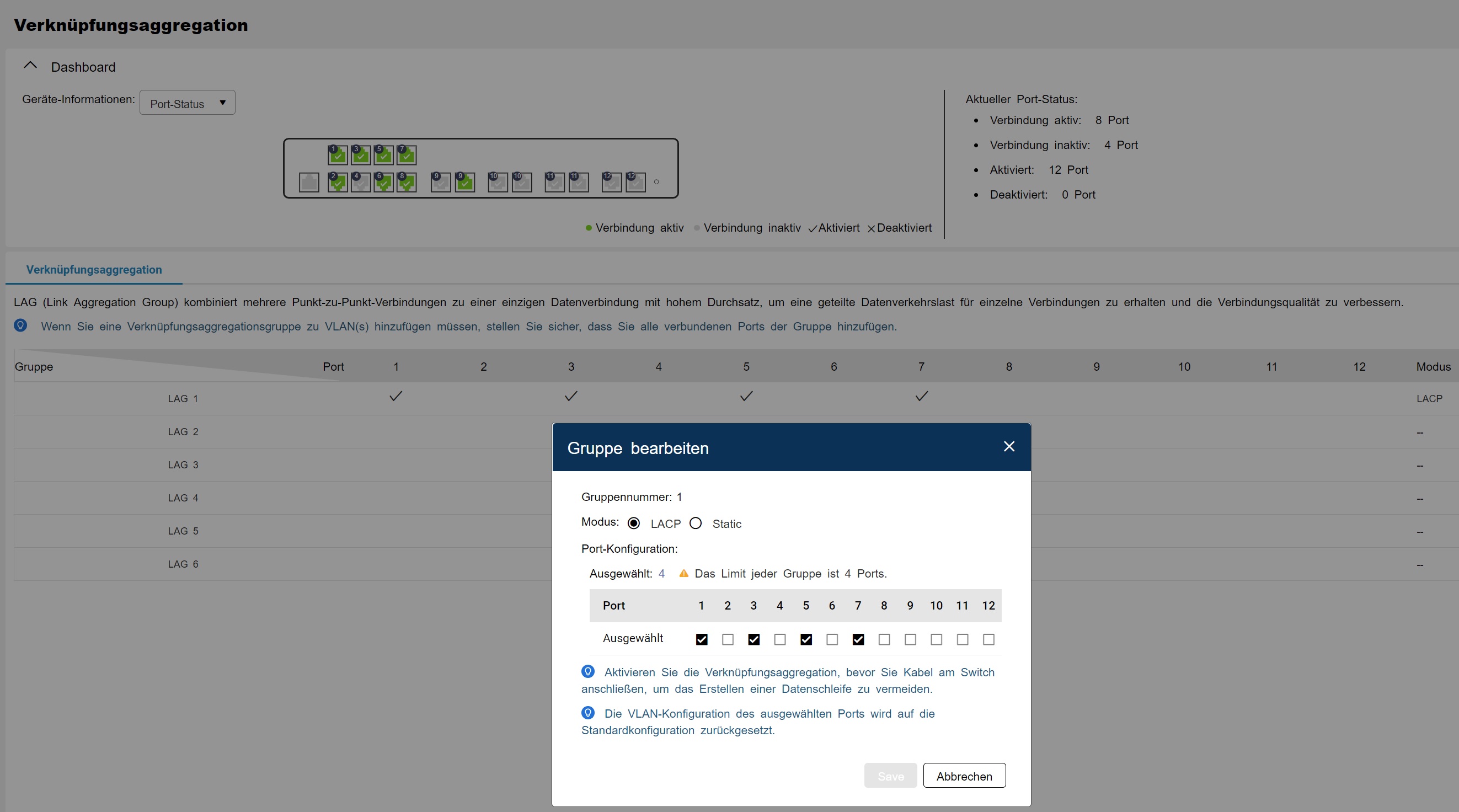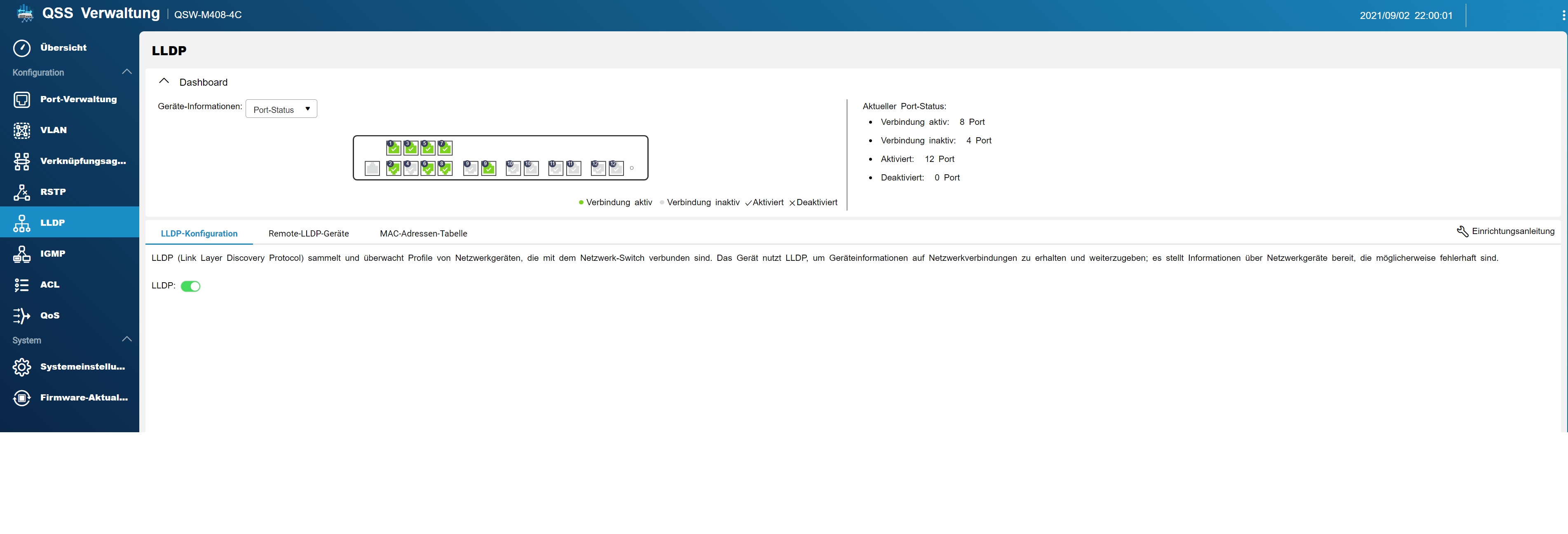 Dazu ein QNAP QSW M408 C4 mit LACP Config. (NAS ebenfalls so konfiguriert)