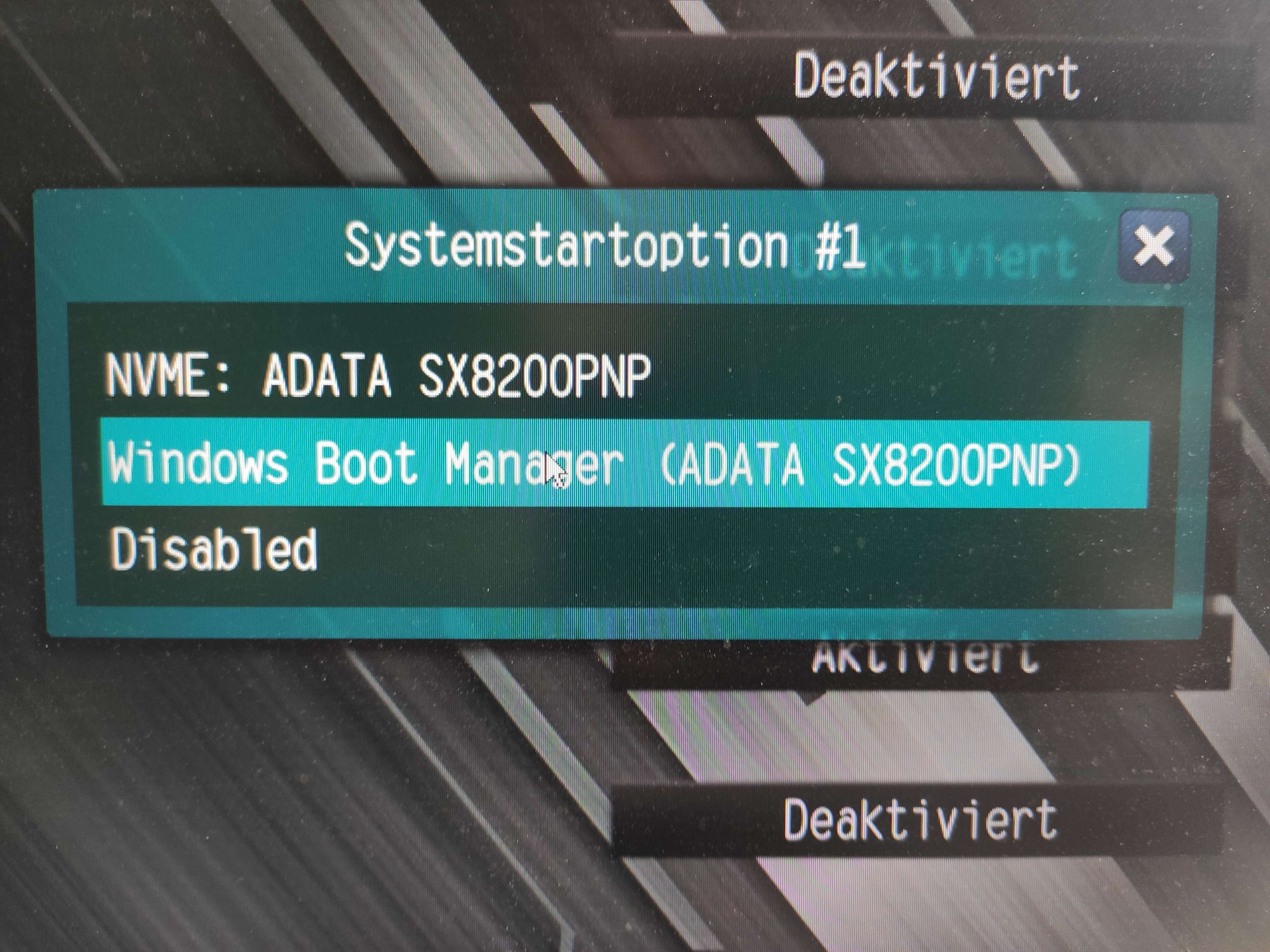 ich wollte mich nochmals melden. Die defekte Startpartition war wohl der Vorbote auf einen kompletten SSD-Ausfall. Seit gestern wird die SSD vom BIOS gar nicht mehr erkannt, scheinbar hat sie nun endgültig den Geist aufgegeben - nach nicht einmal 4 Jahren. Ein Kreuzverbau mit meiner 2ten SSD schließt das Mainboard als Problem aus. Sobald die SX8200 PRO eingesteckt ist, benötige ich gut 1min. bis ich überhaupt ins BIOS komme. Dort wird die SX8200 dann gar nicht mehr erkannt. Ohne die SX8200 funktioniert das System einwandfrei und schnell.