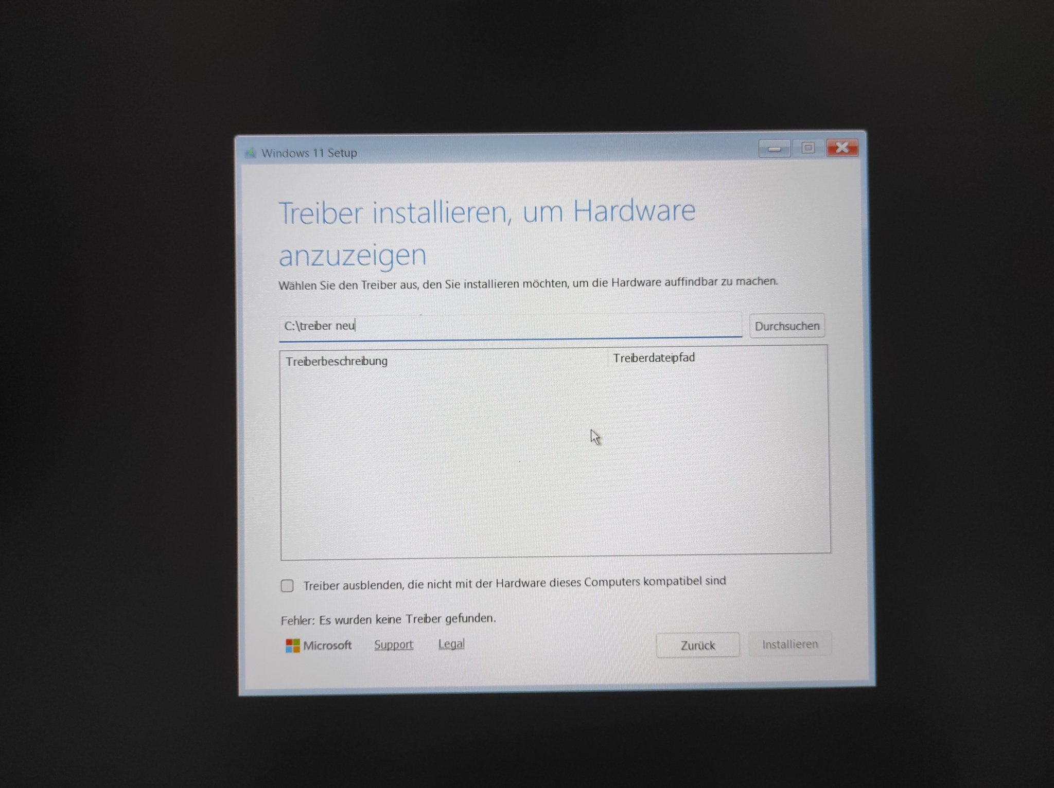 Win11 Installation nicht möglich, partition wird nicht angezeigt
