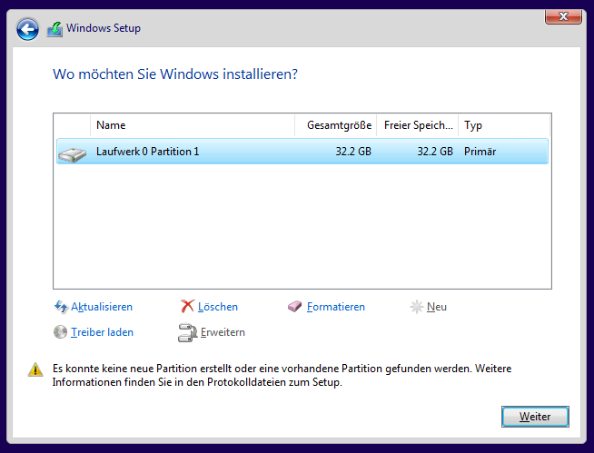 Na doch. Habe es doch erklärt. Probiere es aus.Volume Z schrieb:Eine primäre Partition von Anfang bis Ende durchgehend lässt Dich das Setup nicht erstellen.