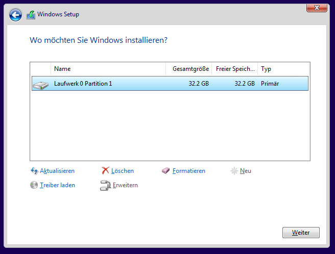 Doch, einfach eine Partition kleiner als gesamt erzeugen und diese dann auf maximal vergößern.Volume Z schrieb:Aber diese Partition kannst Du nicht im Setup-Fenster erzeugen.