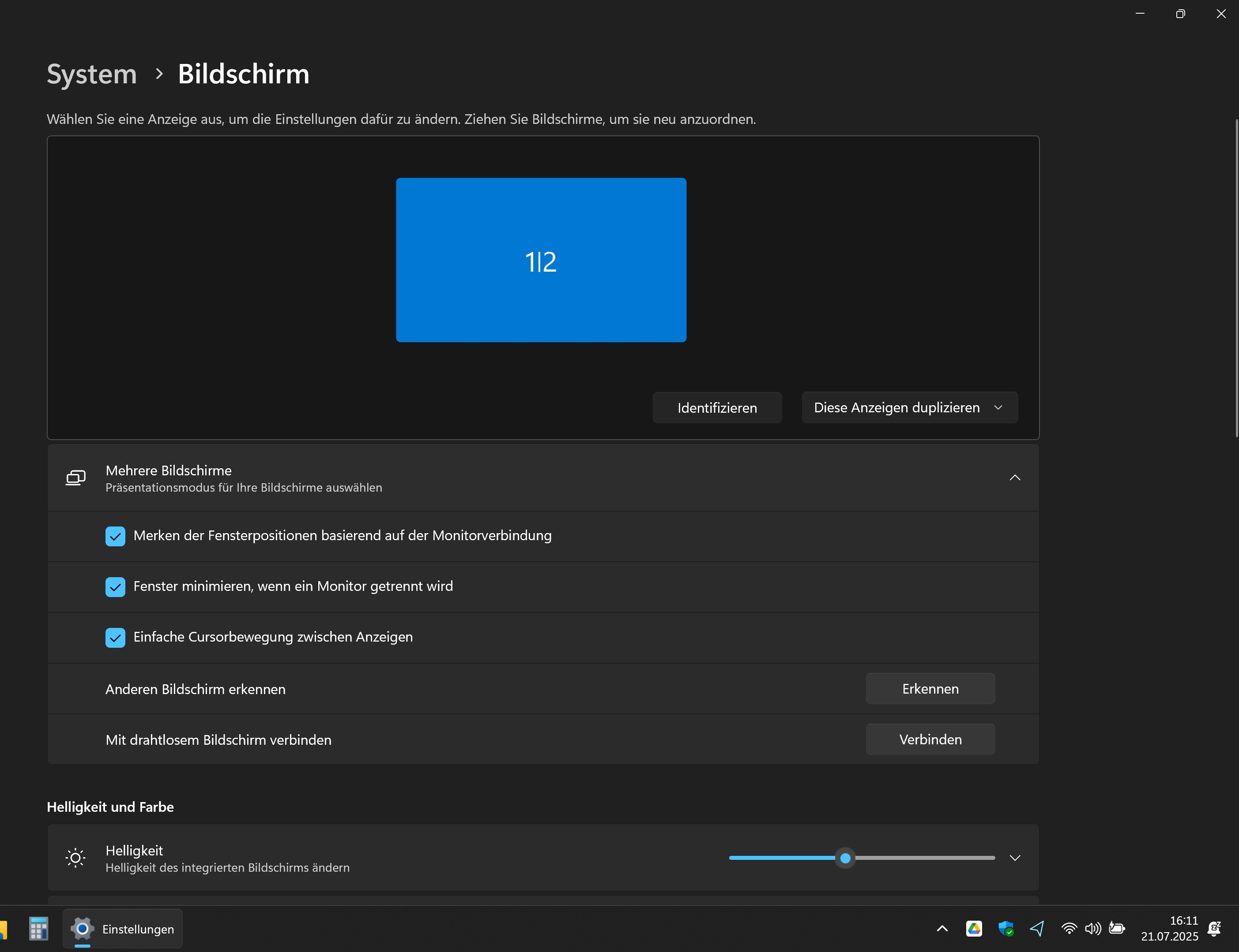 Wenn ich unter den Anzeigeeinstellung schaue, dann sehe ich das Folgende: