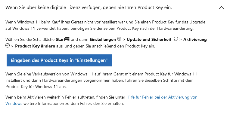 Jetzt habe ich mein System aufgrund eines kompletten Hardwarewechsels neu installiert und Win 11 lässt sich nicht mehr aktivieren.