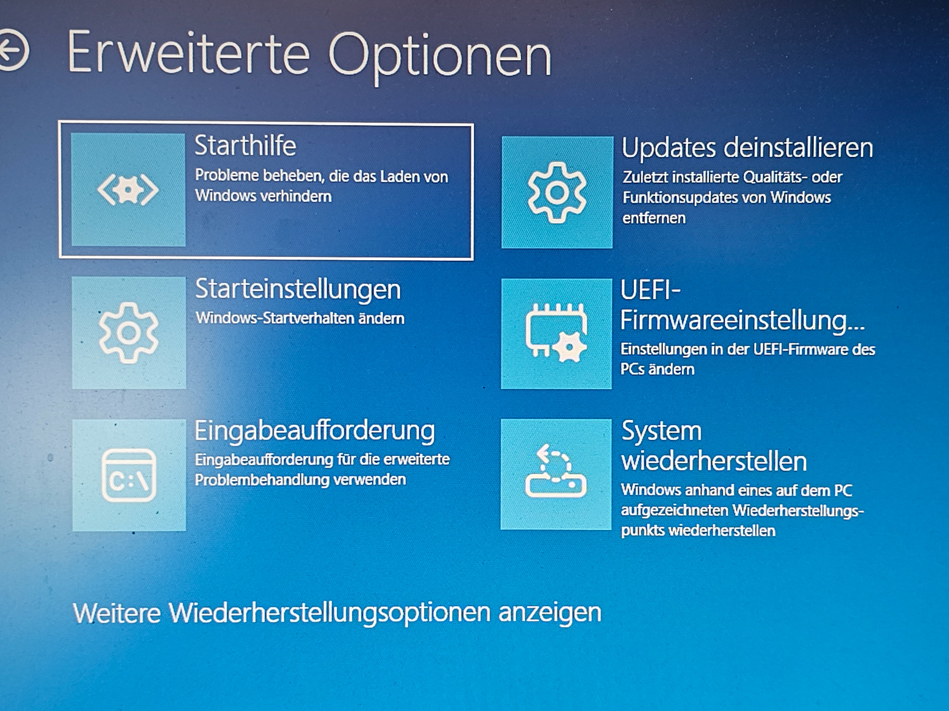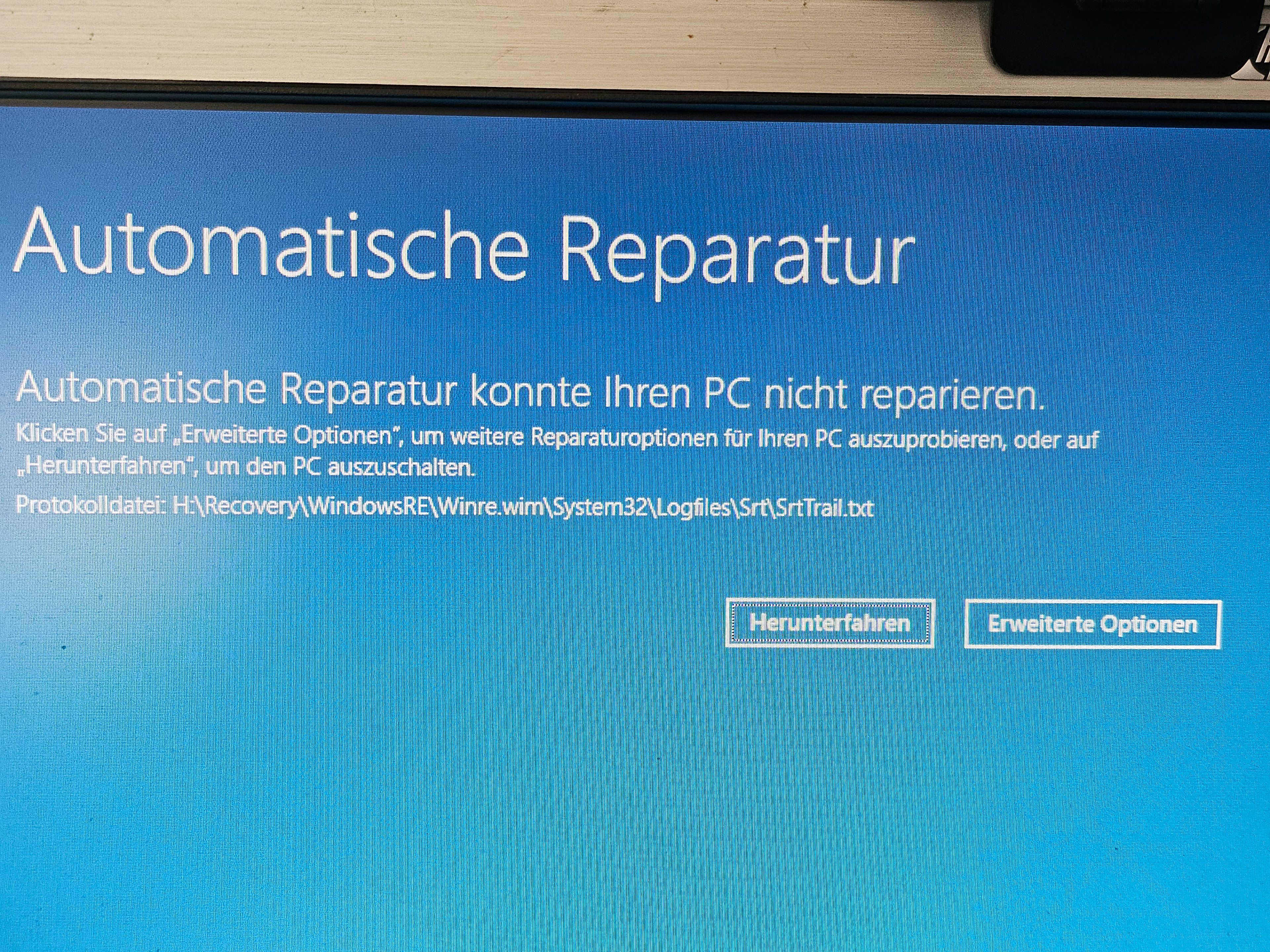 Danach startet Windows im Reparatur Modus und endet an dieser Stelle.