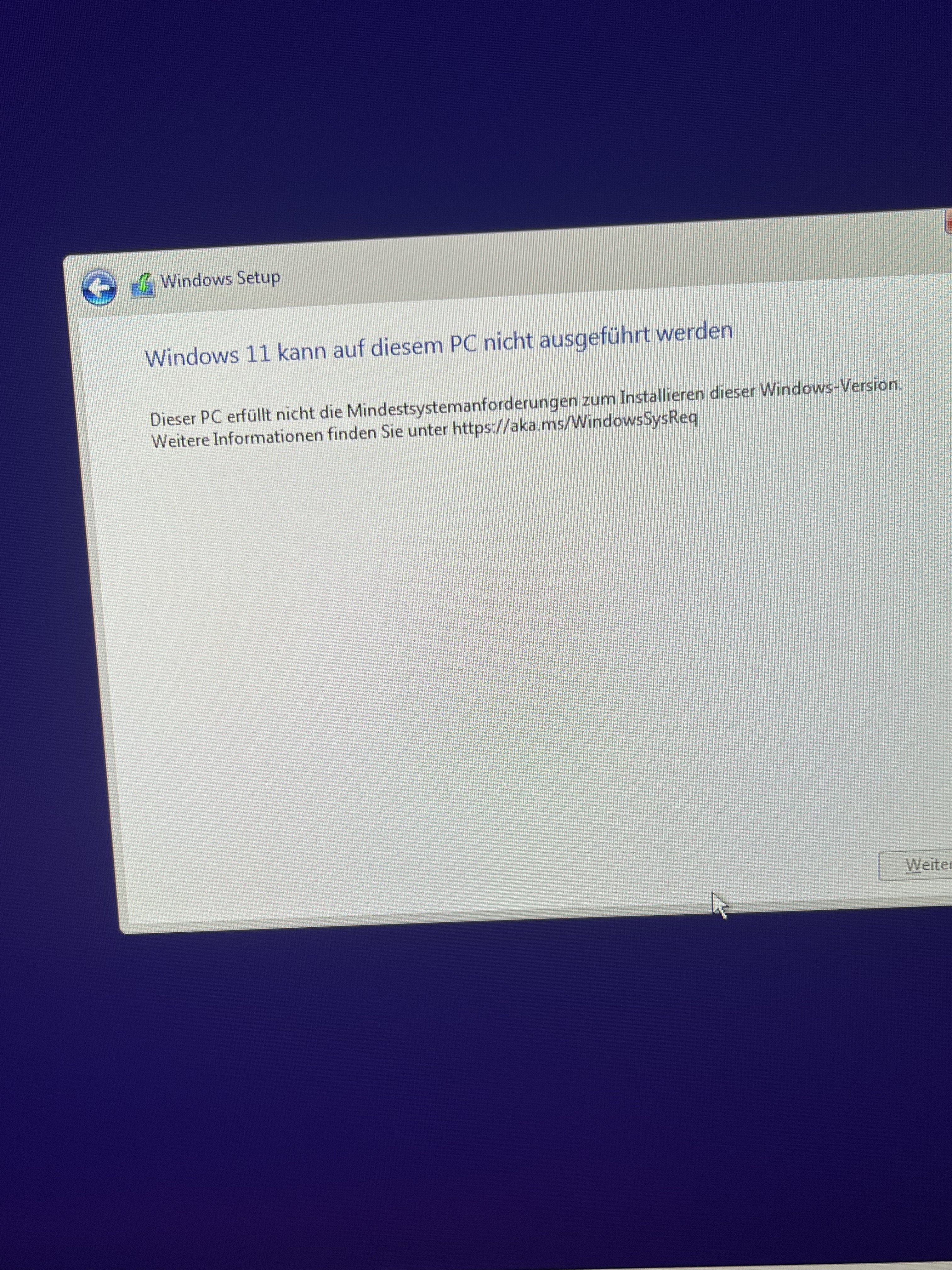 Im bios erkennt er den Stick als „uefi usb Medium“ und beim Versuch zu booten komm ich immer bis zum selben Schritt, er lässt mich die gewünschte Version von Windows auswählen und danach erscheint die Fehler Meldung im Anhang.