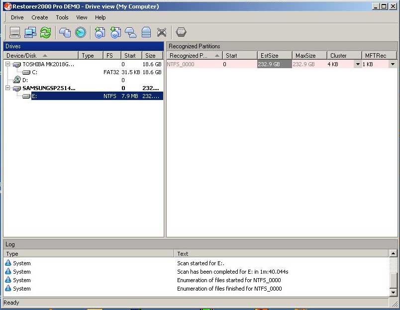 Hinterher kannst du oben im rechten Fenster in Restorer auf die Festplattensymbole (erkannte Partitionen) klicken und auf deine Daten untersuchen.