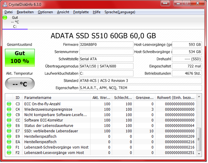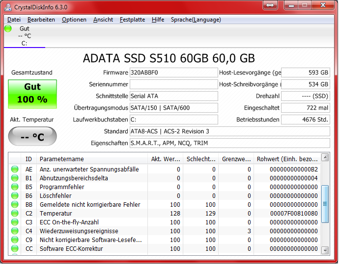 Nochmal ein paar Bilder aus CrystalDiskInfo