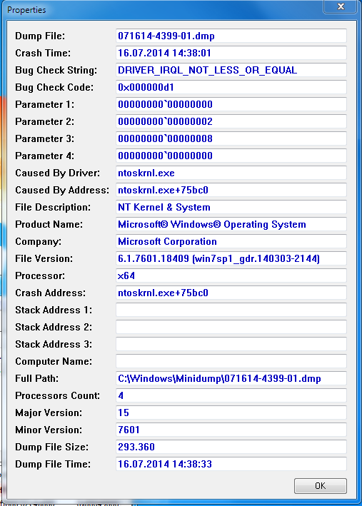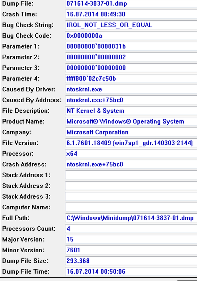 ich hab regelmäßige bluescreens (Abstand 2-3Tage) ich hab mir schon "bluescreenview" downgeloaded und da wird folgendes ausgelesen