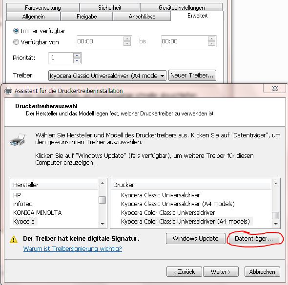 leider ist der Treiber aber nicht vollständig installiert & auch der Nashuatec- Drucker unter "Drucker & Geräte" nicht zu finden