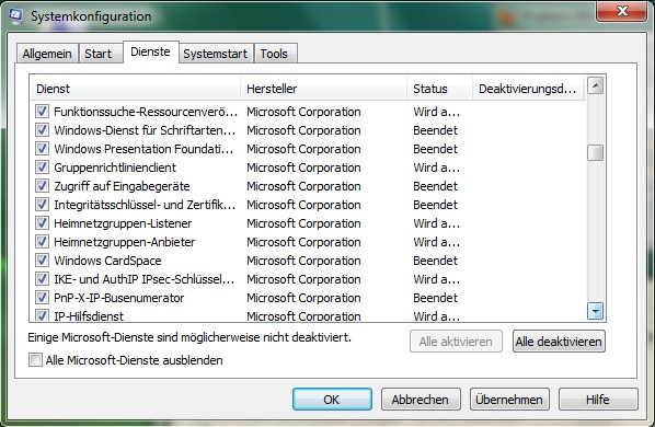 Ich hab dann gleich mal den Haufen sinnloser Programme deinstalliert, hab mich an die Liste hier gehalten: