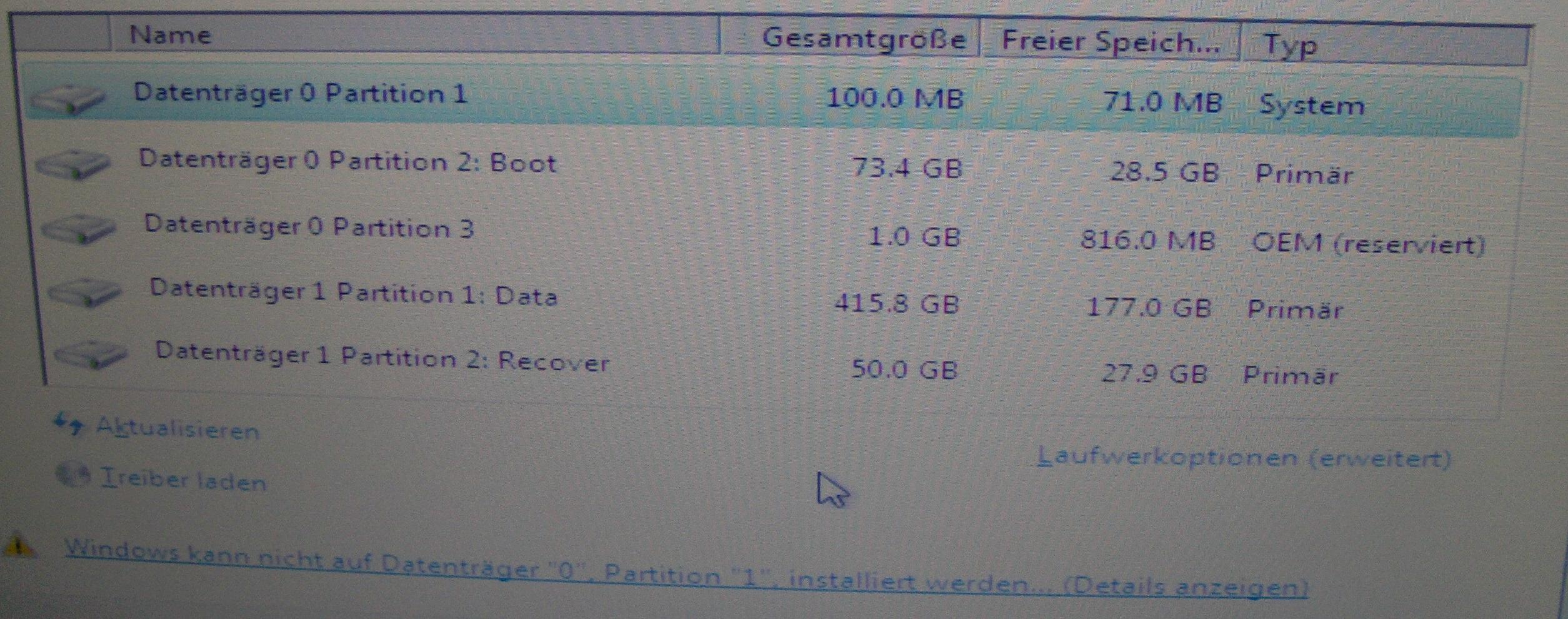 Ich hab versucht Windows 7 auf meinem Medion Erazer Laptop neuzuinstallieren, aber da waren jetzt ein paar Partitionen über die ich unsicher bin.