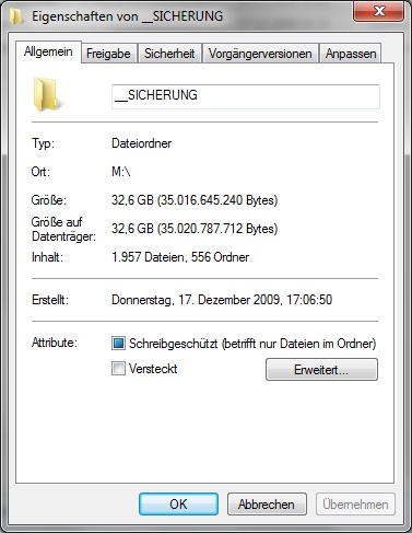 Bild 1: Ist das so in Ordnung, dass die Dateien schreibgeschützt sind? Soll ich das Viereck wegmachen? Welchen Sinn hat das?