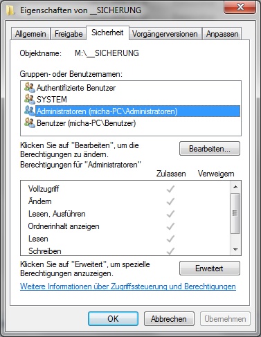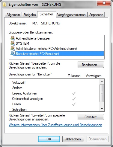 Bild 2+3: Ist das so Windows-Standard, dass der Benutzer keine Ordner ändern und schreiben kann? Hab nur einen Benutzer "micha" bei der Installation erstellt. Welchen Sinn hat das?