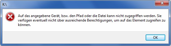 Auf das angegebene Gerät, bzw. den Pfad oder die datei kann nicht zugegriffen werden. Sie verfügen eventuell nicht über ausreichende Berechtigungen,..usw.