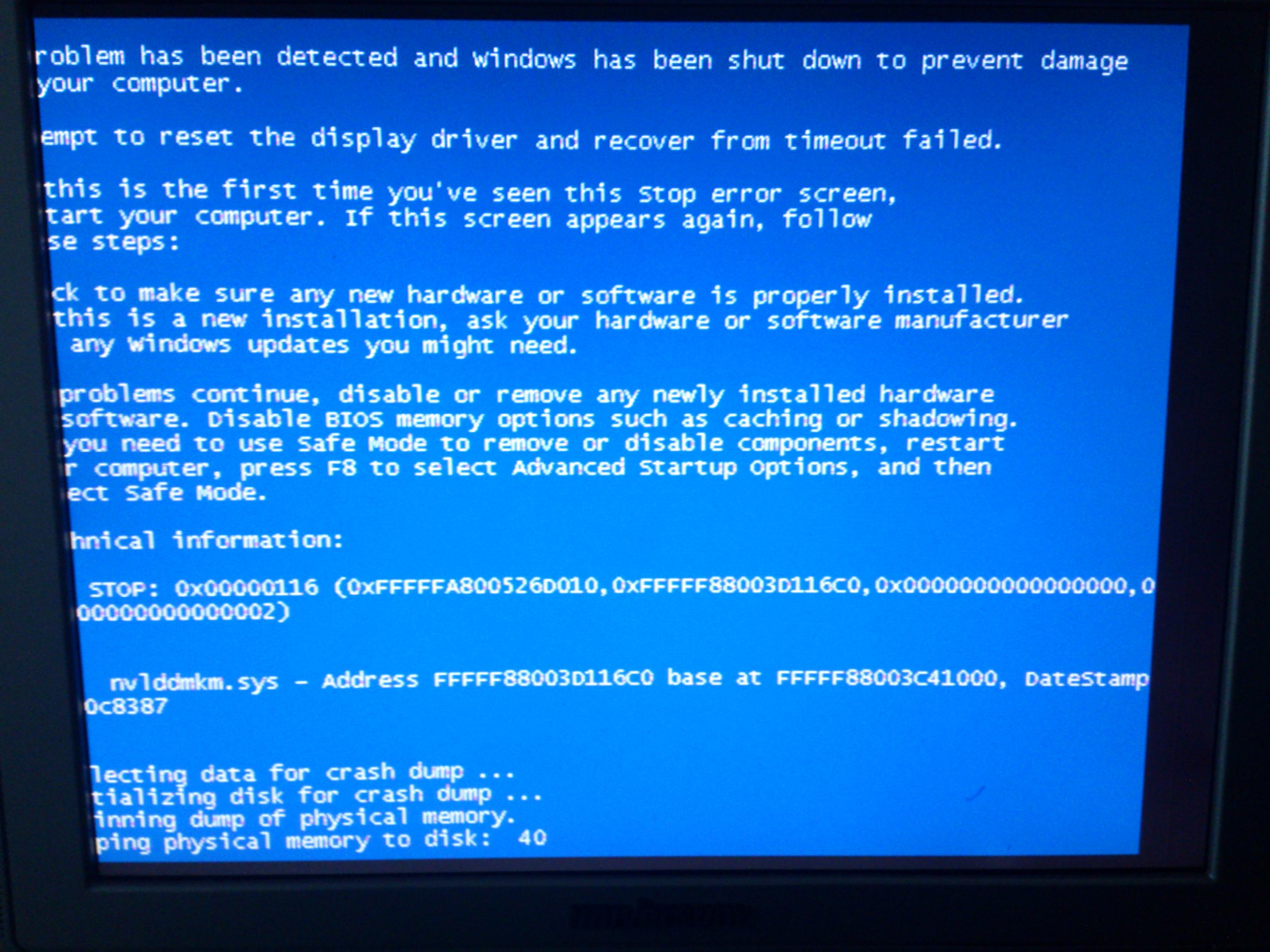 Meldung nvlddmkm.sys ist auch nvidia