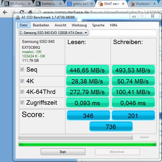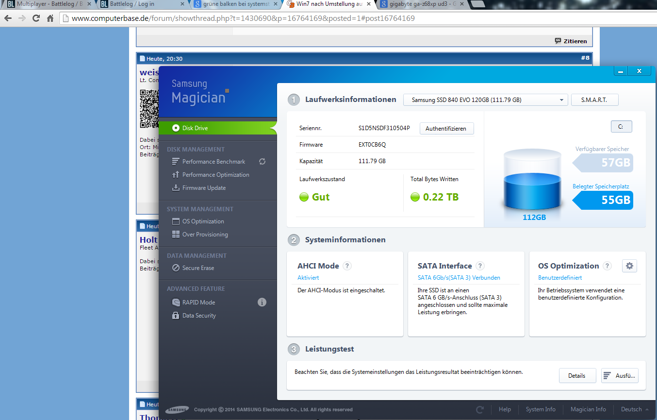 wie oben im Titel genannt habe ich meine HDD(1TB 7200rpm) durch eine SSD(Samsung 120GB) ersetzt und die Daten mit Magician geklont, seit da an habe ich immer beim Starten einen grünen Balken der ca. 7 mal durchläuft.