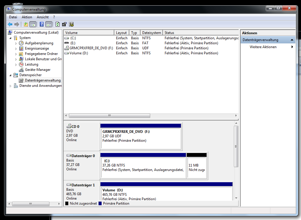 Und D war wohl mal ne 500GB Platte ne? Eine 500GB Platte sollte unter XP mit 488GB angezeigt werden,