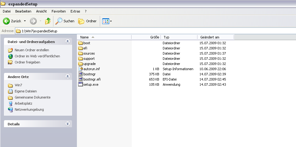 Nun befinden sich die entpackten Dateien im dem Ordner "expandedSetup".