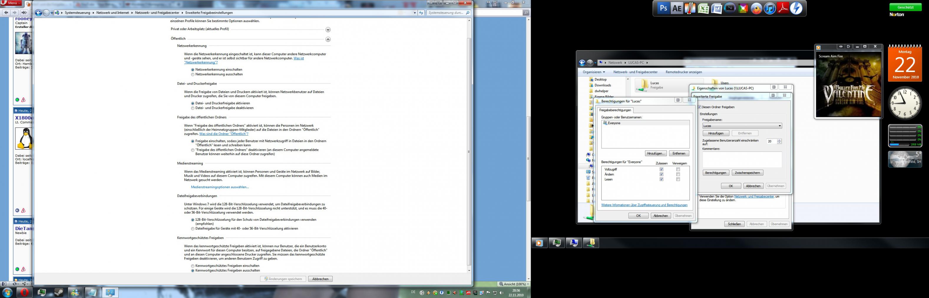 So nun habe ich die beiden Musik Ordner ebenfalls Freigegeben und jedem in meiner Heimnetzgruppe den zugriff erlaubt ( Lesen+Schreiben ), aber trozdem sagt ermir jedesmal wenn ich auf den jeweils anderen Ordner zugreifen will, sagt er mit, dass ich nicht die Berechtigung hätte ( alles Freigegeben müsste also eigentlich klappen^^ )..
