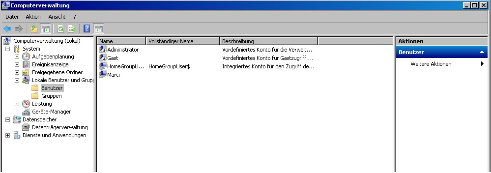 Auch als Administrator bleibt der User-Ordner leer (abgesehen vom Ordner "Öffentlich", der aber immer da ist).