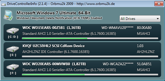 Auf der ersten WD (1.5 TB) läuft zurzeit auf einer 30 GB-partition Win7 x64 Ultimate. Angeschlossen über AHCI-Protokoll, zumindest laut Tools (kann aber Festplatten per Icon nicht entfernen).