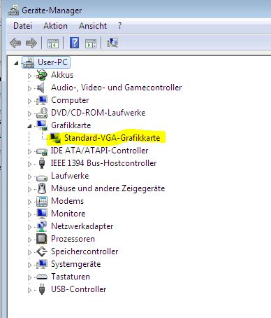 Aber ich glaube das Problem ist das ich im Gerätemanager unter Grafikkarte nur den Standard-VGA-Grafikkarte findet und für die ist wahrscheinlich eh der beste Treiber installiert.