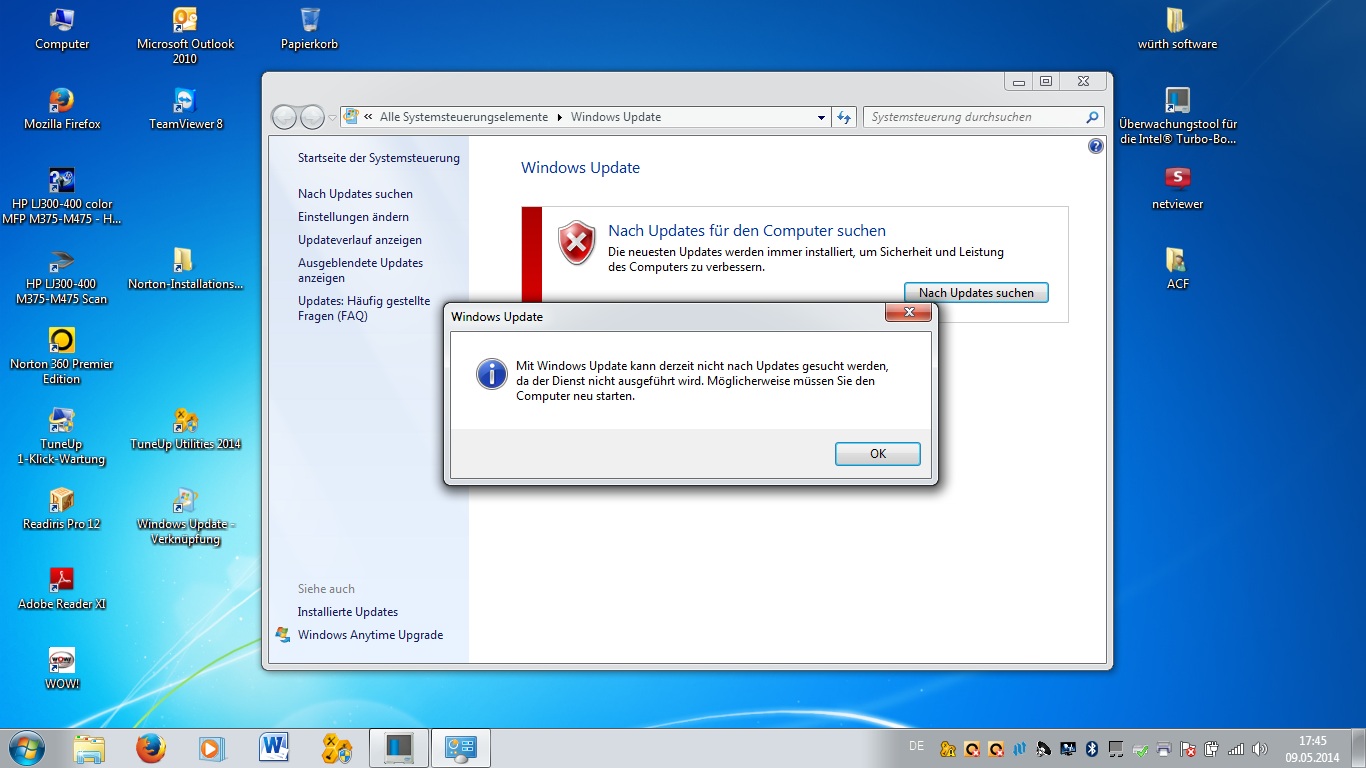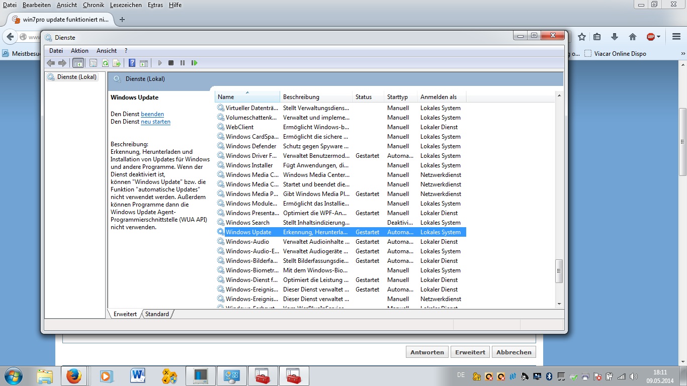 Danach auch mal in den Diensten überprüft ob der Dienst 'Windows Update' auch gestartet ist - dazu via Start - Ausführen und dort services.msc eingeben und den Dienst Windows Update suchen und überprüfen.