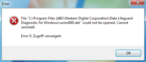 das Problem sieht gerade so aus, dass sich vereinzelt Software nicht mehr installieren oder deinstallieren lassen. Im Anhang finden sich dazu 2 Beispielbilder. Gerade das zweite Bild lässt mich ein Rechteproblem vermuten. Die benannte Datei bzw. das ganze Verzeichnis ist ja standardmäßig schreibgeschützt. Entferne ich nun diesen Schreibschutz, startet die Deinstallation problemlos. Aber das kann nicht das Grundproblem sein. UAC ist auf Standard. Imho sind auch alle Rechte korrekt vergeben, aber ich lasse mich da gern eines besseren belehren.