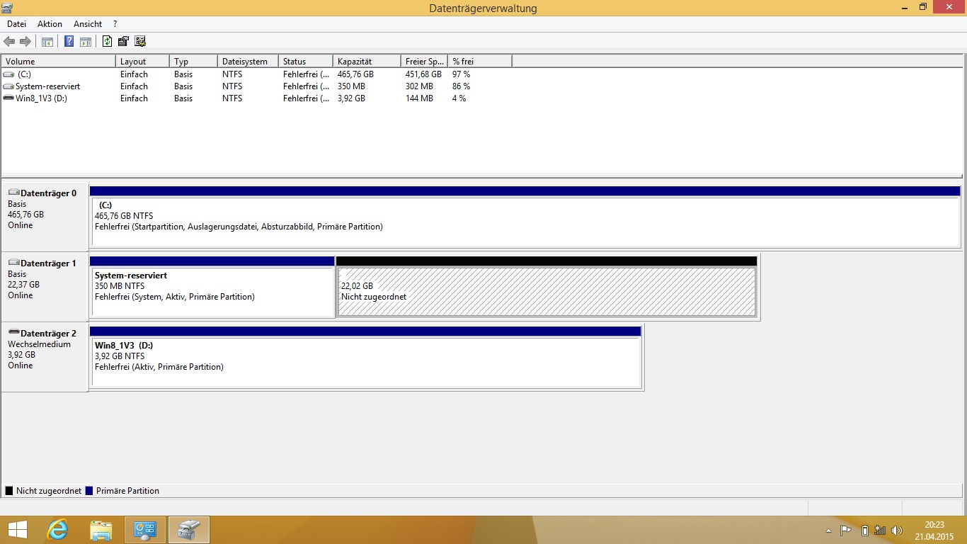 Eine Freundin hat gestern versucht Win8.1 auf ihrem vormals Win7 Laptop zu installieren, mit einem bootfähigen USB-Stick. Dies hat nicht funktioniert, wir haben das jetzt zusammen nochmal gemacht und wir sind auf ein sehr seltsames Problem gestoßen: