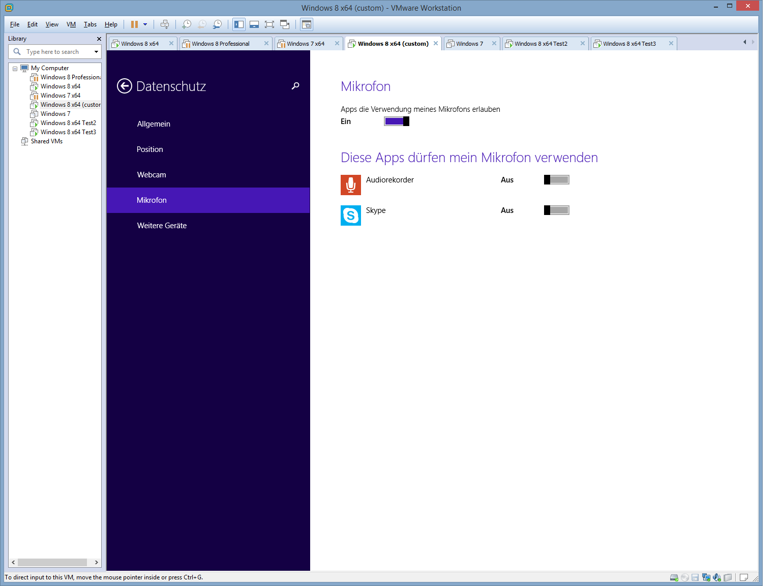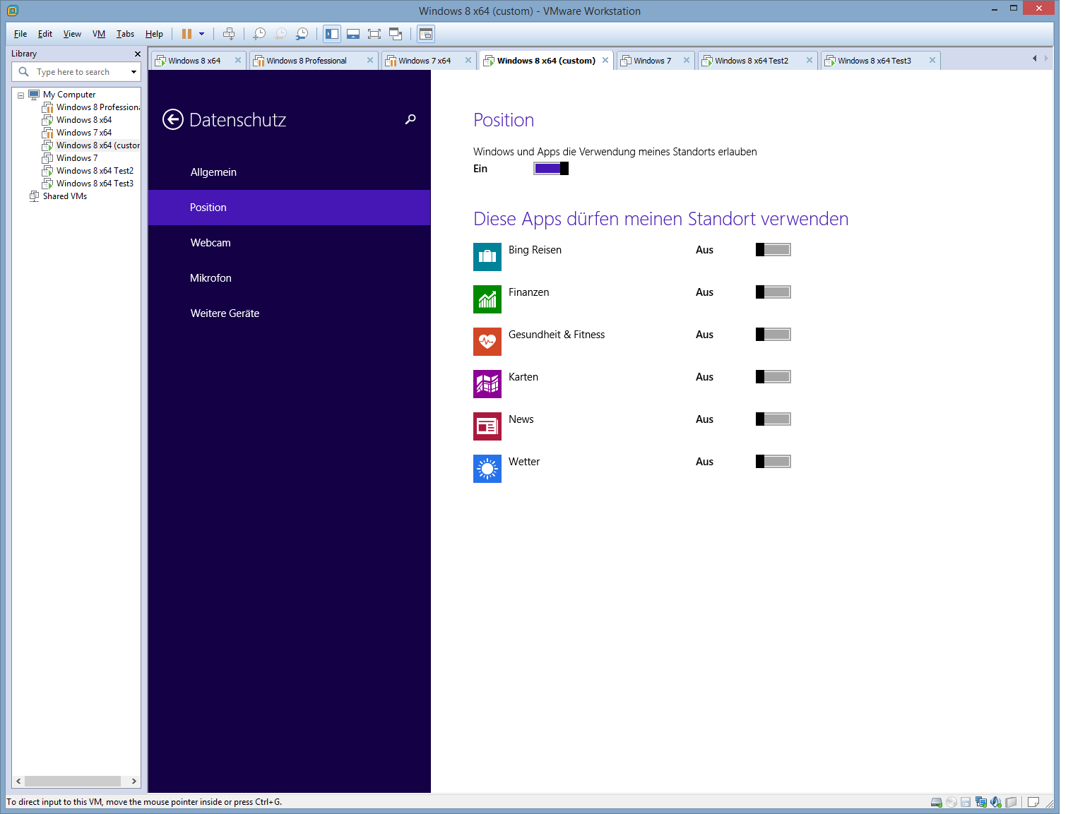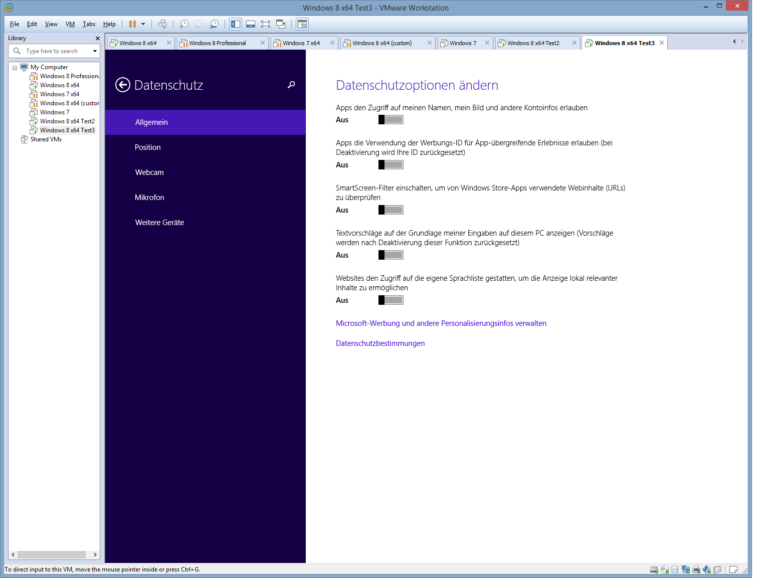 1. de_windows_8.1_with_update_x64_dvd_4048209.iso besorgt und mittels VMware als virtuelle Maschine installiert
