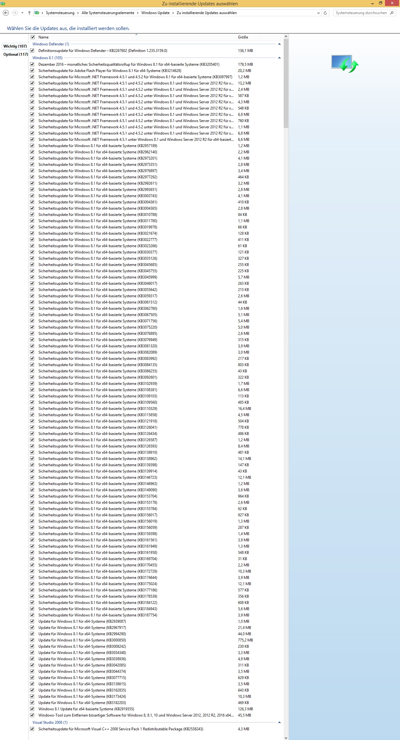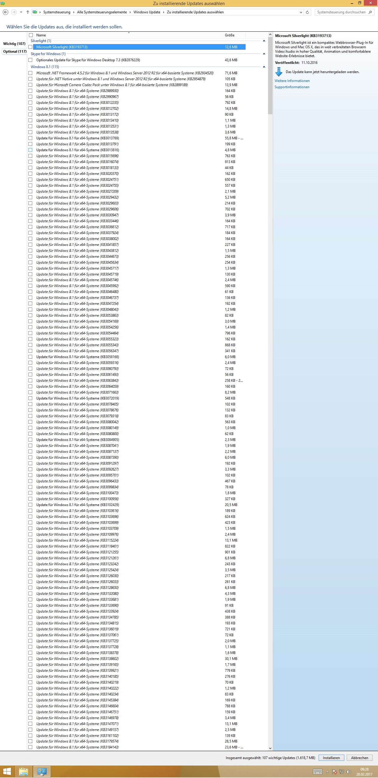 Vorhandene Elemente: KB2919355 | Aktualisierung 1 (E:\Windows 8.1 (custom)\Wichtig\Windows8.1-KB2919355-x64.msu)