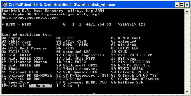 2; ist die Partitionsart. Hier im Beispiel 06. Dort sollte bei dir " 0b " stehen für Fat32.