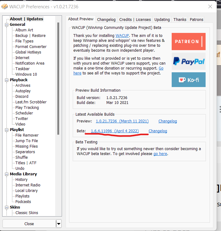 wollt ich auch schon schreiben aber seit über einem Jahr gibts keine neue Beta.. Hab mich da extra noch angemeldet bei WACUP
