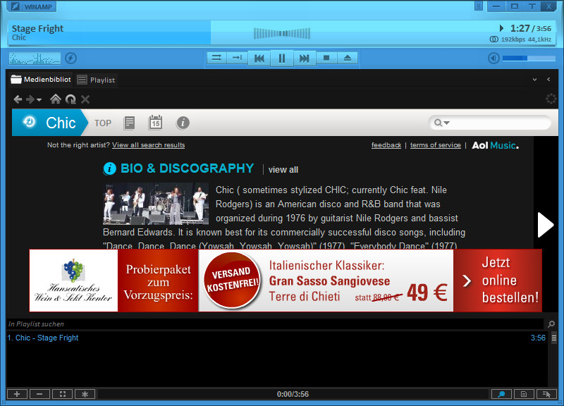 Skin auf Winamp Modern setzten, Medienbibliothek Ansicht auf Lokale Medien stellen.