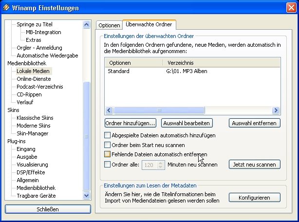 Wenn ich dann aber Winamp starte und die Platten "wieder mal" booten müssen, fehlt auf einmal die Medienbibliothek. Da hilft dann nur erneutes einlesen, was aber auf dauer echt nervend ist.