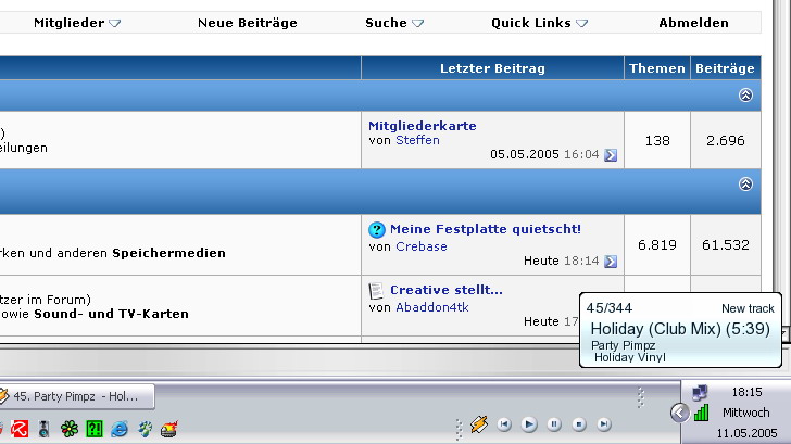 Also ich spielte gestern Abend etwas mit den Settings meines Winamp5 Players rum, und jetzt erschent bei jedem neuen Track und wenn ich Start, Stop oder Pause drücke immer ein kleines Fenster, welches mir anzeigt was grade passiert (->Screen).