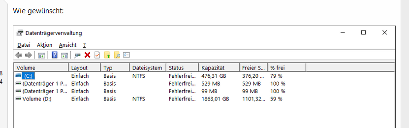 Der TE hat noch 1909 und da wurde in der Datenträgerverwaltung nun mal 100% angezeigt.
