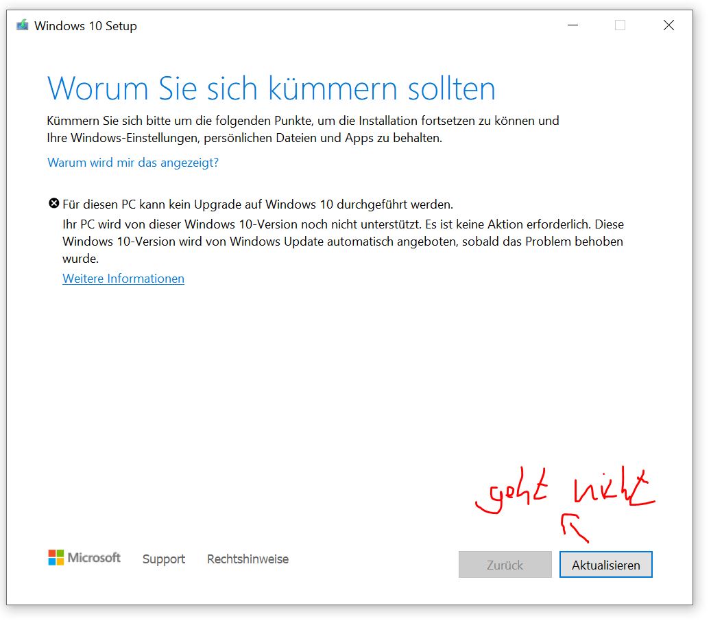 Nach Google Recherche soll der Fehler eine Treiberproblematik diese Meldung auslösen.