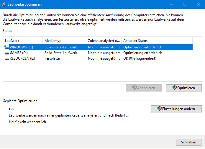 nur steht eben später wieder da "Noch nie ausgeführt", "optimierung erforderlich".