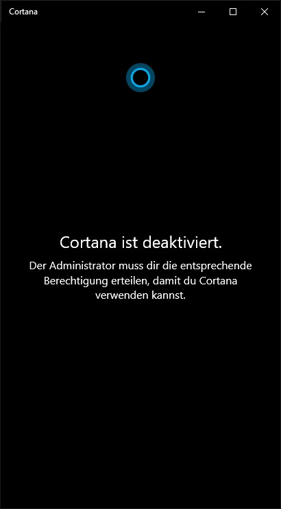 Ich find die Meldung aber lustig... ich muss mich an den Admin wenden? Der bin ich, denn ich hab Cortana selber deaktiviert und deswegen weiss ich auch, wie ich es wieder aktivieren könnte? Und am tollsten find ich, dass ich gleich geduzt werde