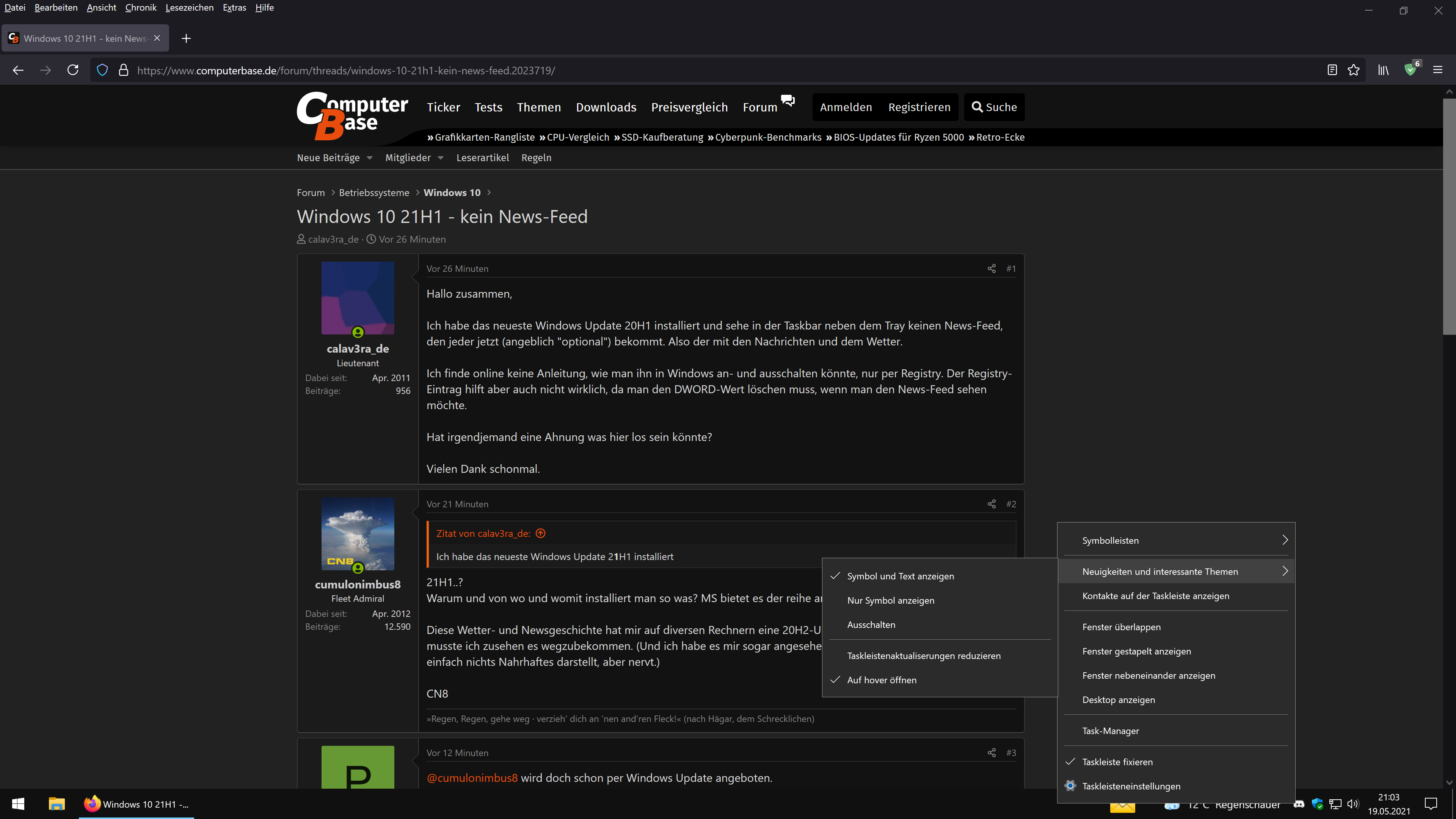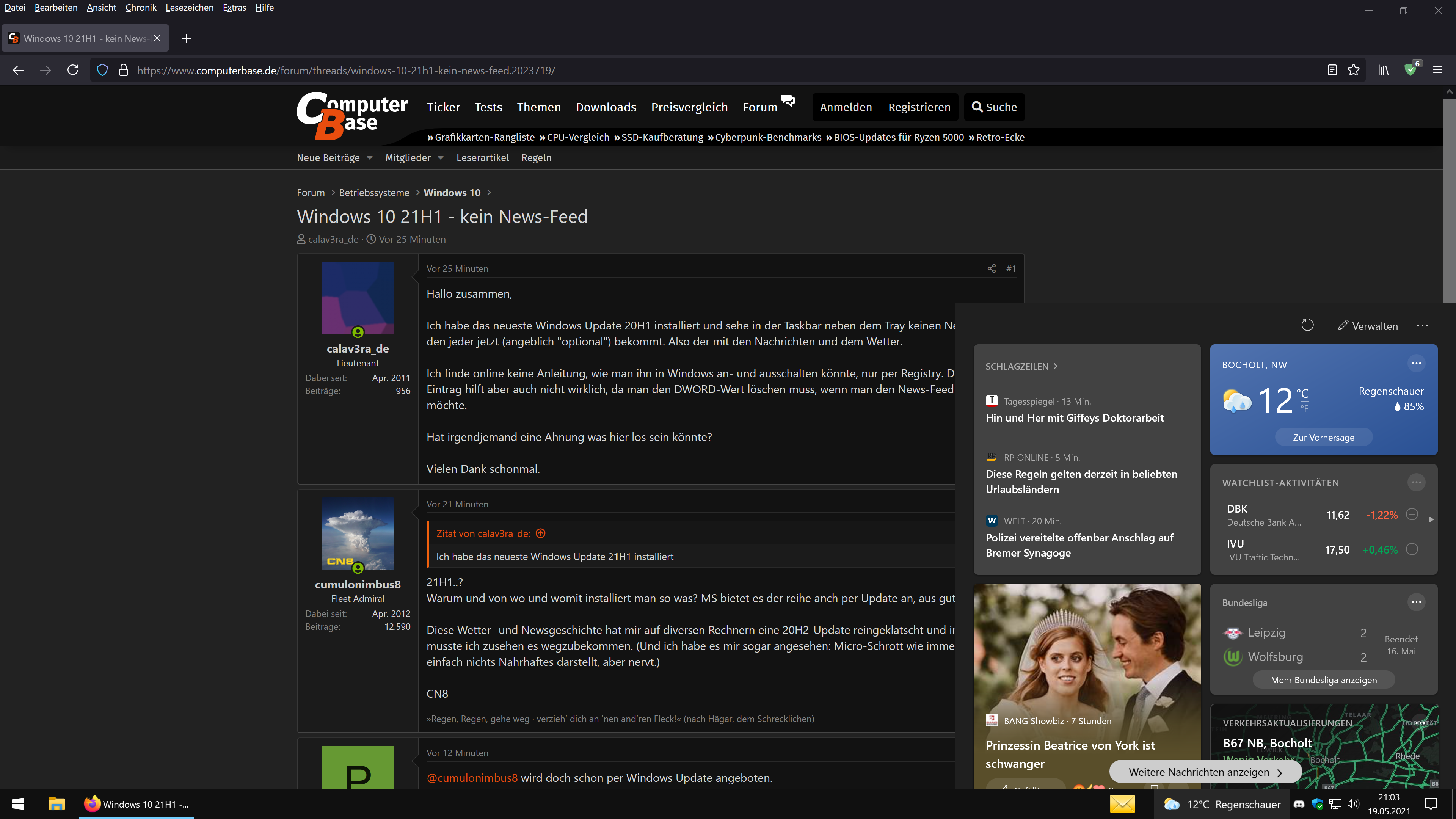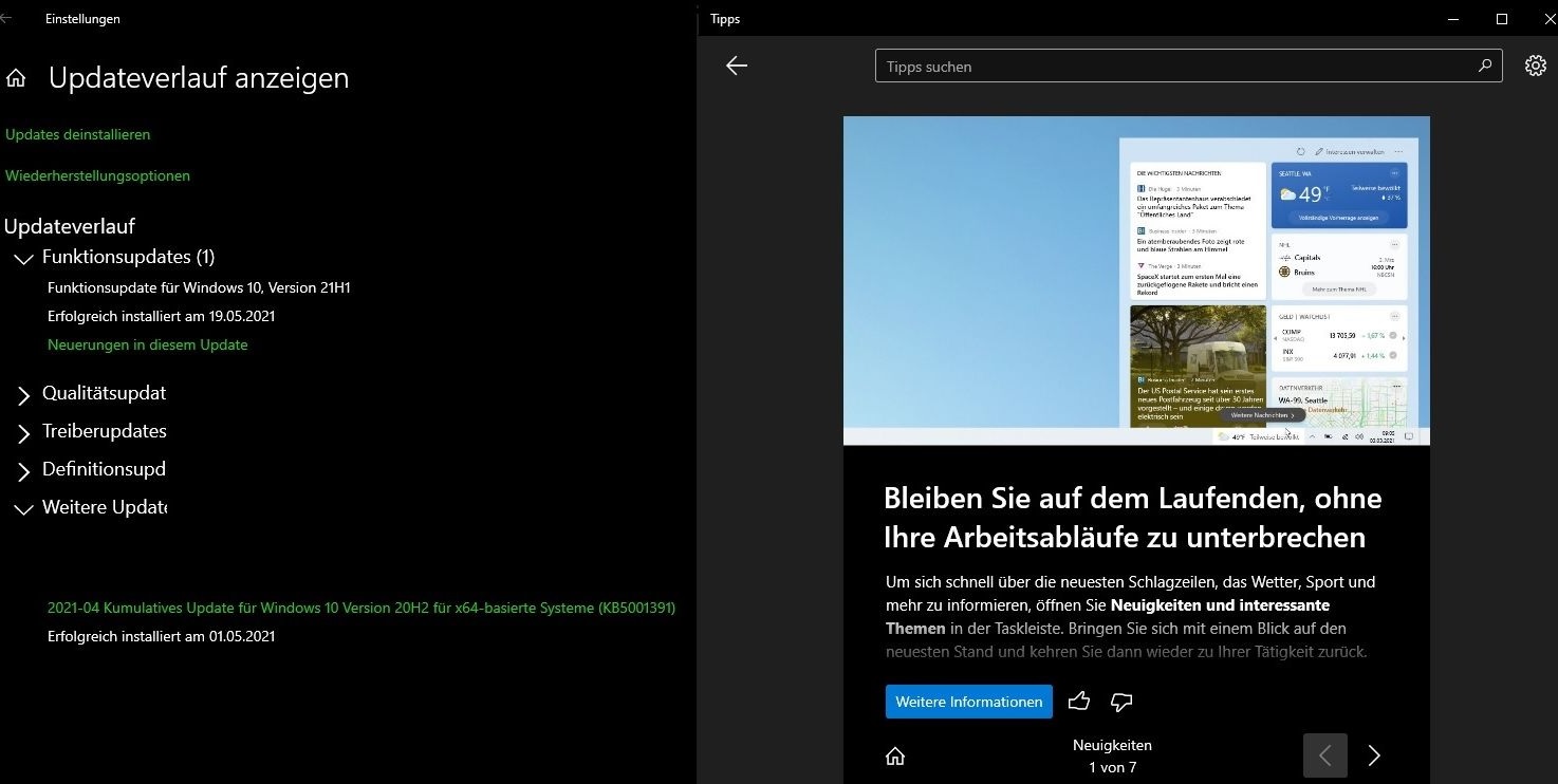 Ich habe das neueste Windows Update 20H1 installiert und sehe in der Taskbar neben dem Tray keinen News-Feed, den jeder jetzt (angeblich "optional") bekommt. Also der mit den Nachrichten und dem Wetter.