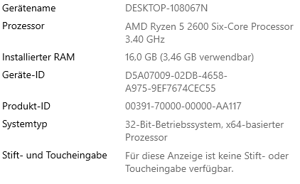 Sobald ich die Installation abgeschlossen habe und auf den Desktop zugreifen kann, steht jedoch dass ein 32-Bit-Betriebssystem läuft.