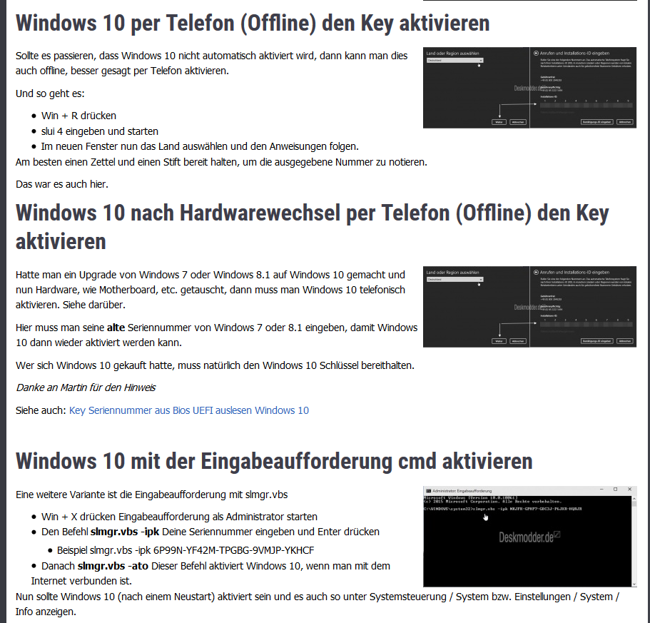 Mit anderen Worten: Lasst Euch nicht von irgendwelchen Geschichten verrückt machen: Wenn Ihr das Upgrade gemacht habt, gehört euch Windows 10 für immer, und ihr werdet es immer wieder neu aktivieren können. Entweder passiert es ganz von selbst oder ihr müsst den Telefonhörer in die Hand nehmen.