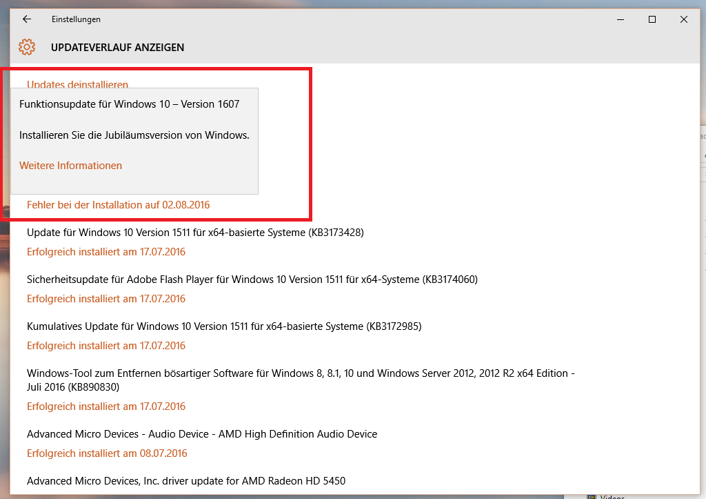 Ich hab übrigens sicherheitshalber mein Antivirenprogramm in der Download und install Zeit deaktiviert, nur um sicher zu gehen, da es damit beim Upgrade auf win10 auch gern mal Probleme gab.