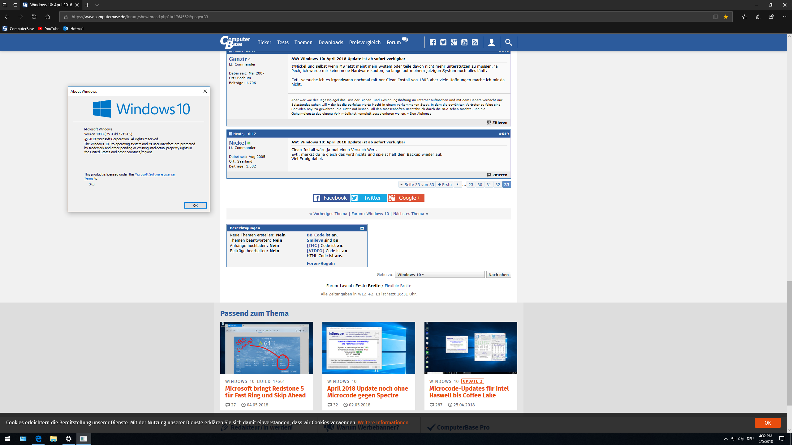 Evtl. versuche ich es irgendwann nochmal mit ner Clean-Install von 1803 aber viele Hoffnungen mache ich mir da nicht.