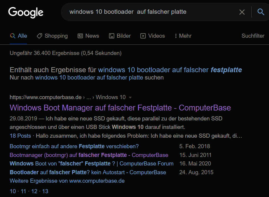 Also habe ich die HDD wieder eingesteckt und alles funktionierte wieder. Schließlich vin ich in die Datenträgerverwaltung unter Windows gegangen und habe festgestellt, dass eine System-Partition auf der HDD liegt, wobei das gesamte Betriebssystem auf der SSD gespeichert werden sollte. Und Windows ist an für sich ja auf der SSD installiert (Lokaler Datenträger C