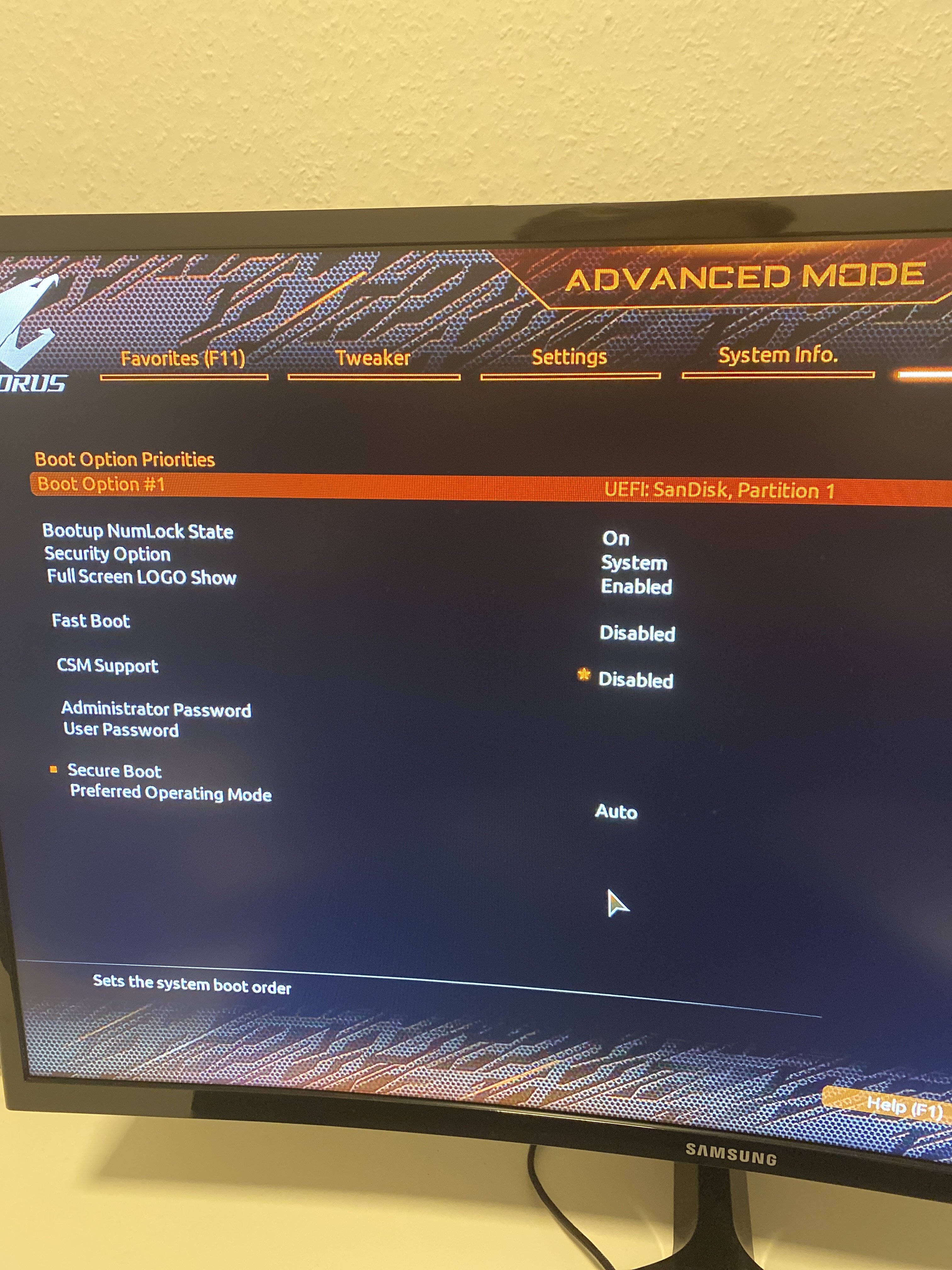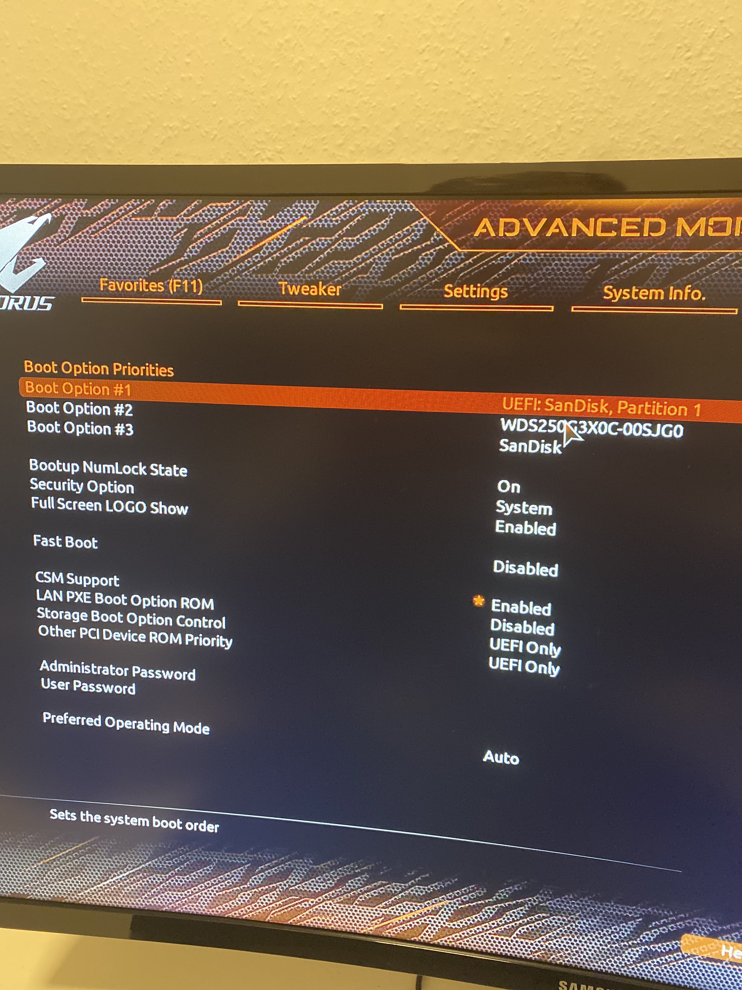 Bild 2 wenn ich CSM ausschalte sieht es so aus dann findet er die m2 nicht zum booten