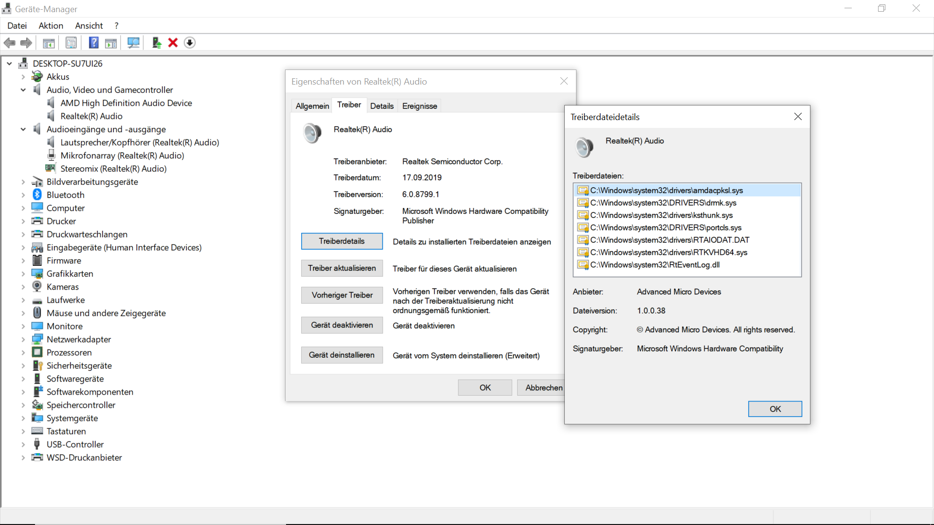 Der Realtek Treiber ist das nicht! Der nennt sich Realtek High Definition Audio.