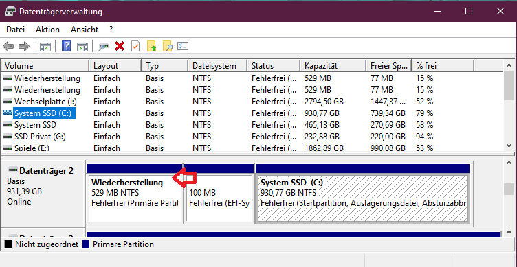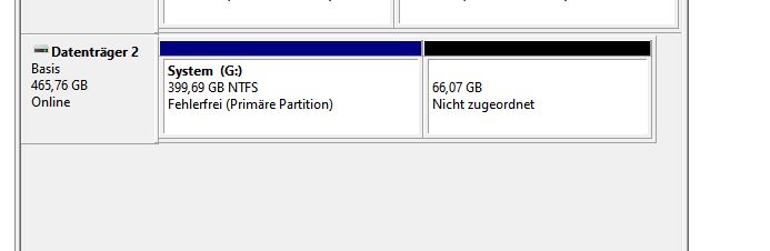Ich bin jetzt soweit damit, dass ich die Systempartition auf die neue SSD geklont habe. Dabei wird automatisch G: als Laufwerksbuchstabe auf der SSD angelegt, weil die aktuelle Systempartition auf der HDD ja auf C: liegt.